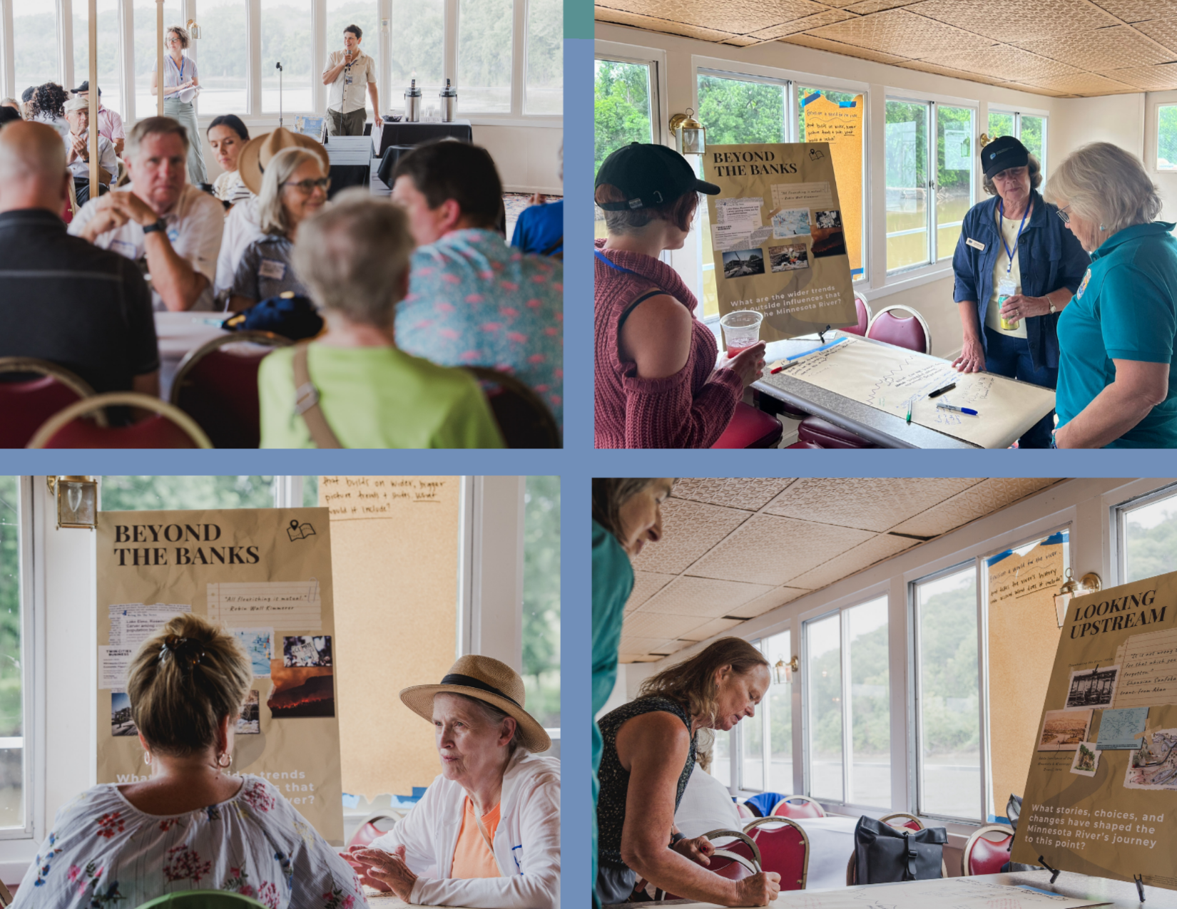 The tour also served as the public kickoff to LMRWD’s upcoming 10-year Watershed Management Plan, driven by the district’s urgent call to action: “The River Will Not Wait.” In the wake of major flooding in 2024 and continued threat of sedimentation, the district used this moment to unveil a community-driven vision for the river’s future. Conversations from the boat are shown in photos to the right.