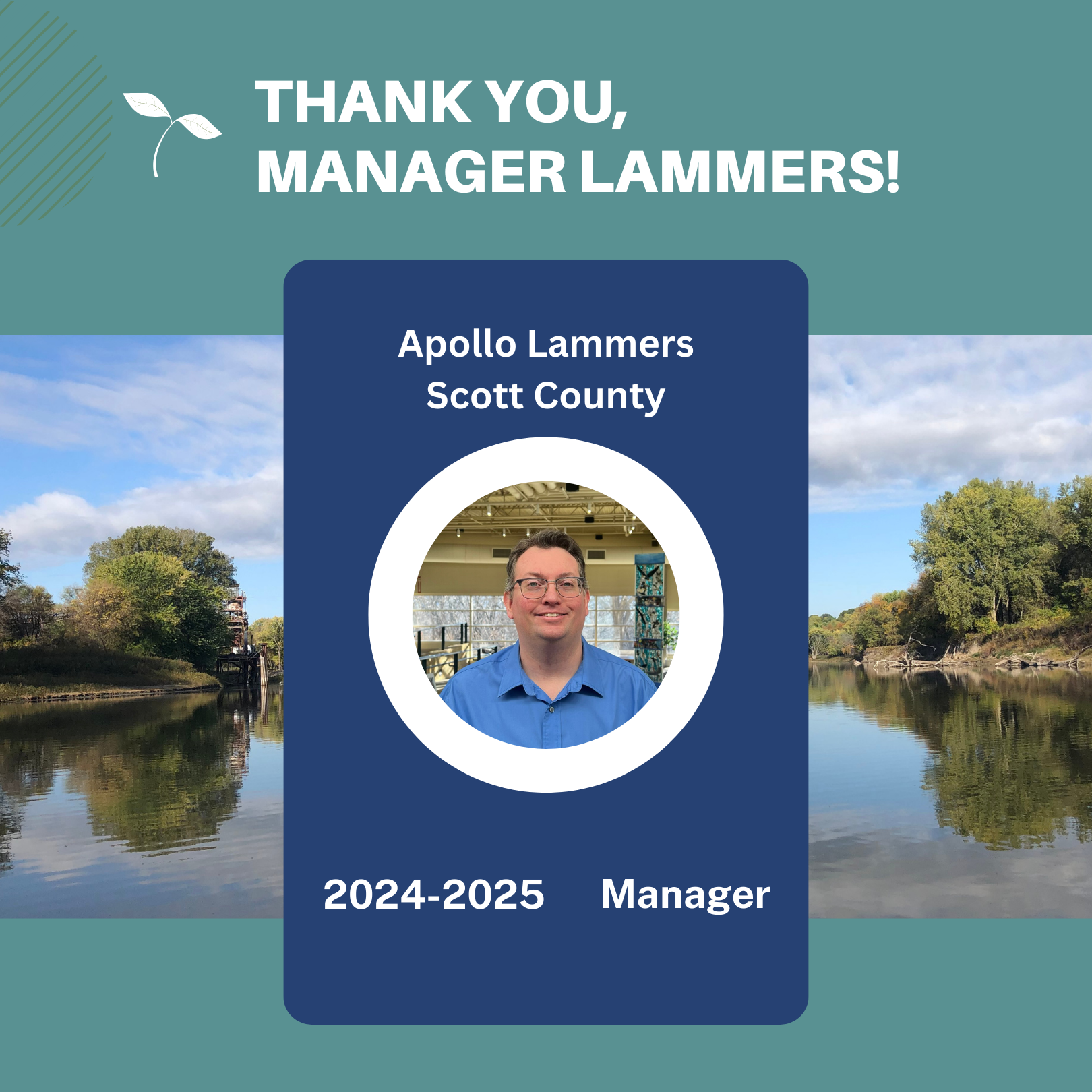 Representing Scott County, Manager Apollo Lammers focused his time on developing partnership opportunities, bluff and bank erosion, and flooding issues. Most recently he supported and attended the Minnesota River Public Listening Session on January 8, 2025, where he helped to integrate input received and turn it into actionable steps for the coming year. Thank you for your service, Manager Lammers!