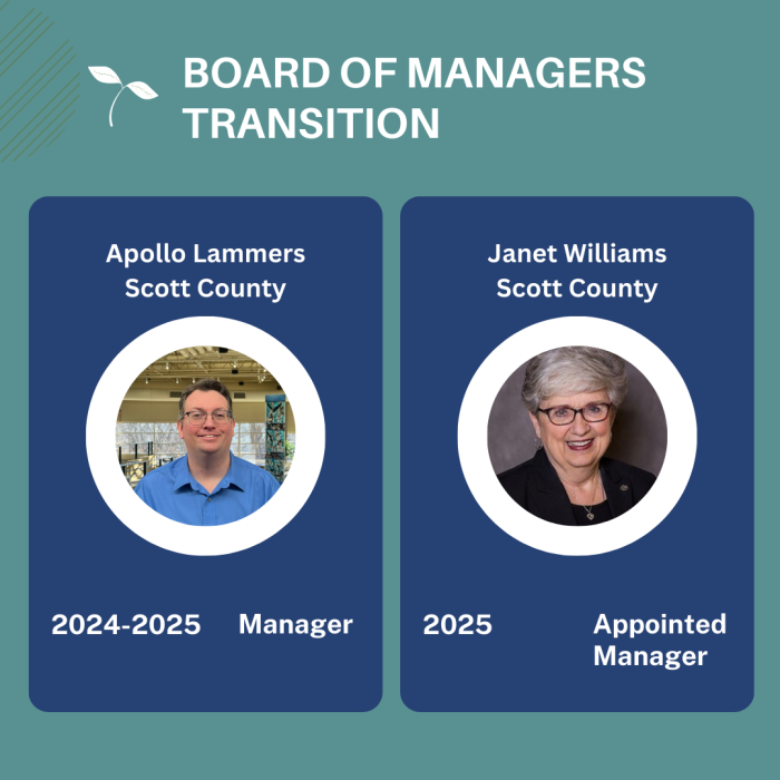 2025 is bringing changes to the managing body of the watershed district. While one Board manager closed his service, another is joining to continue the organization’s work on protecting and improving the Lower Minnesota River Watershed District (LMRWD).