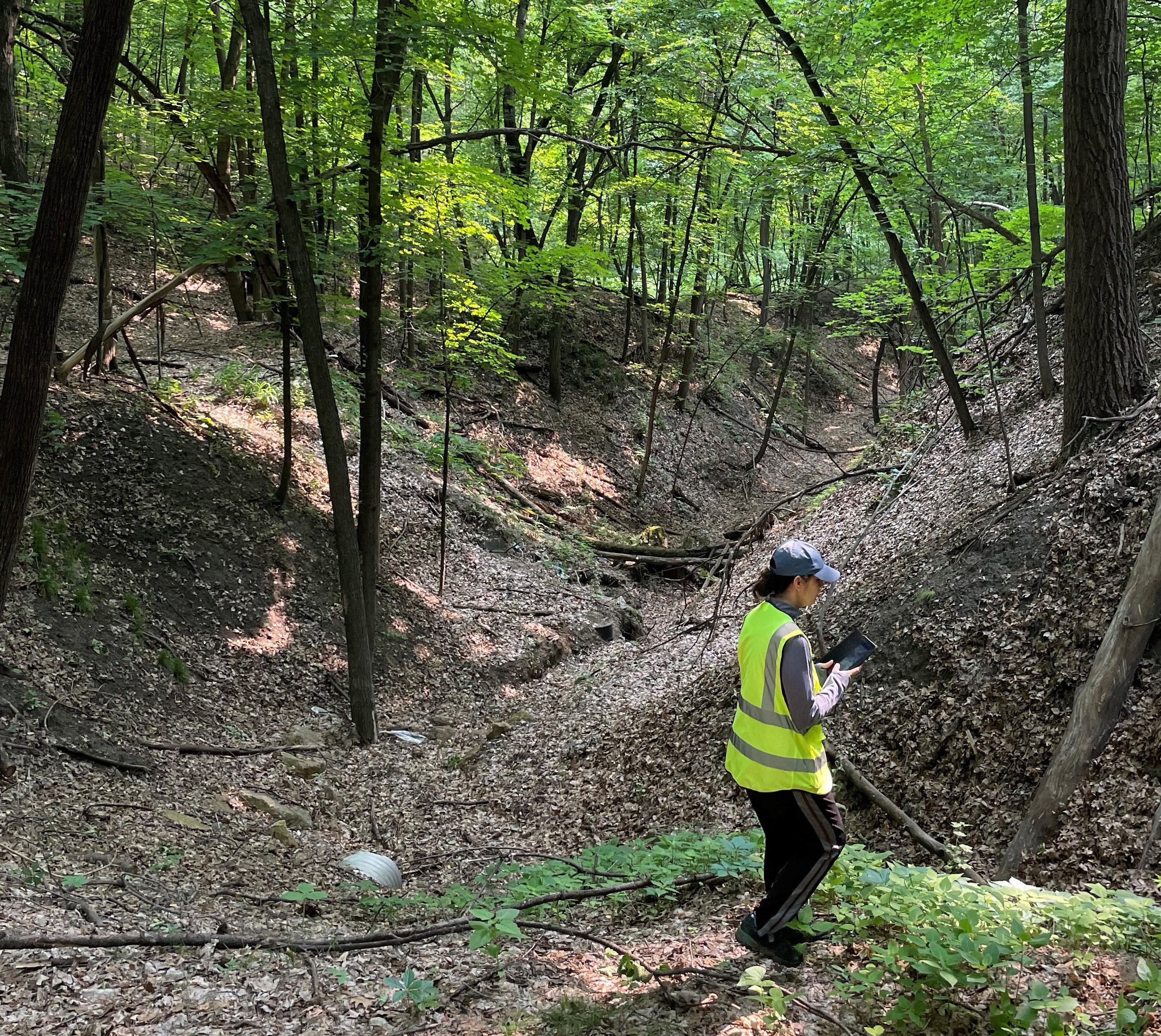 As part of ongoing research and management plans, three new interns performed additional gully assessments in the summer 2023 season. The latest stage of analysis will determine the primary areas of flow and sediment contribution into the Minnesota River between the City of Carver and the confluence with the Mississippi River, while formulating management and restoration strategies to improve the areas of concern in the future.