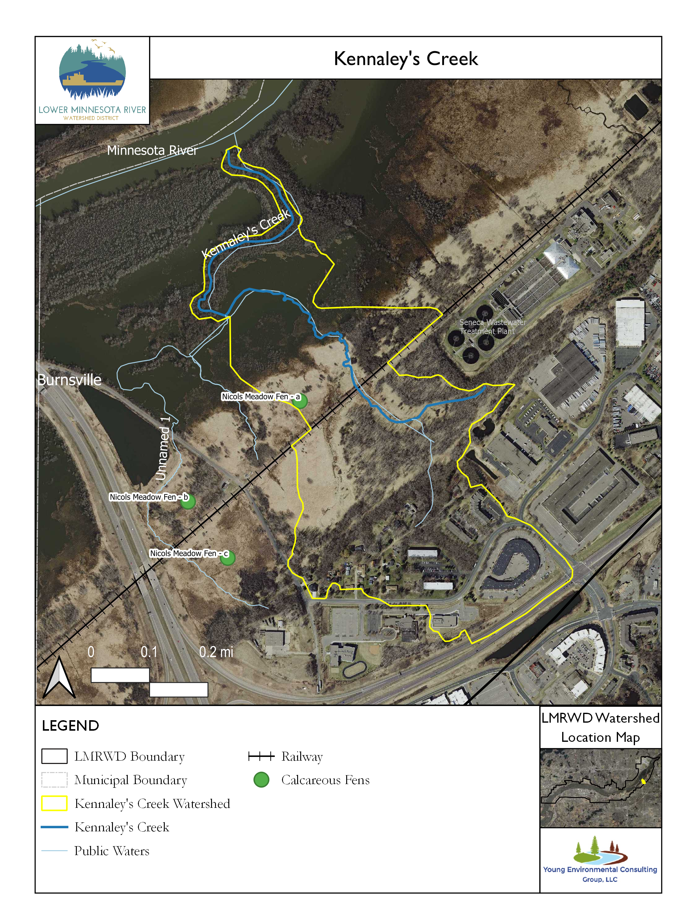 Streamflow to Kennaley’s Creek may also be inadequate to sustain a trout fishery. The Metropolitan Council of Environmental Services (MNDNR) monitors groundwater levels to assess whether dewatering at their nearby Seneca Wastewater Treatment facility can be reduced to provide a greater constant flow to the stream. The MNDNR and the Dakota County Soil and Water Conservation District also monitor groundwater associated with Nicols Meadow Fen, which is southwest of the creek. These efforts, combined with a greater understanding of the relationship between groundwater and the amount of water carried by the creek, might improve the habitat and trout viability.